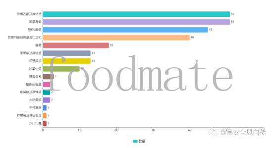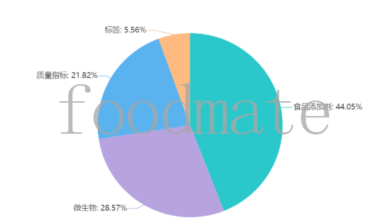 二,添加劑44.05%幾個大字拍你臉上有的人估計要有點慌張了,別擔心我後面慢慢分析這裏能看出許多內容。我比較關注的是微生物的28.57%和質量指標的21.82%這兩個是可以直接帶來對人體的損害的,也是最常見的食品安全問題。