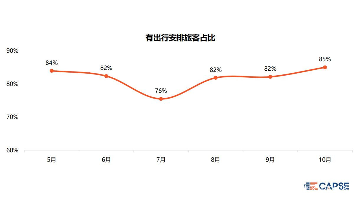 受十一假期影響,10月份有出行安排旅客佔比85%,高於9月份。