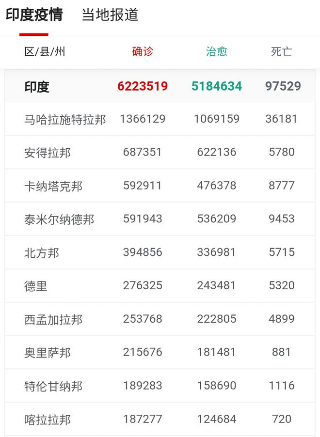 從印度疫情防控糟糕程度,也由此不得不令國際社會懷疑印度對外公佈確診病例的真實性和準確度。迄今為止,印度對外公佈的確診病例為622.35萬人,累計死亡病例97529人。