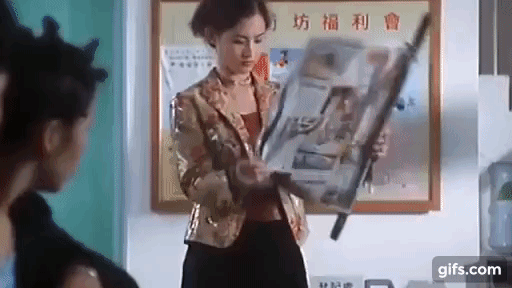 張柏芝是個暴脾氣,被周星馳一句話得罪了,已經面無表情,在挑傢伙準備揍周星馳了。