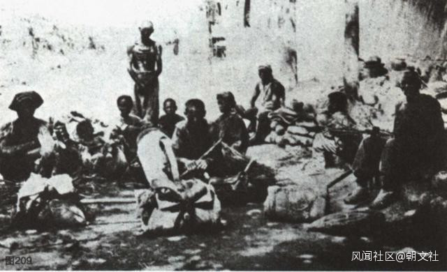 比如這張拍攝於20世紀30年代的照片,就曾讓多少讀者動容。以拍攝照片的外國記者描述,當時他在中國一處山間歧路上,看到成羣結隊逃難的人羣,每一個人都骨瘦如柴,卻用小車拖家帶口,甚至還有孩子“伏在父母的屍體上哭”。然後,就有了這樣一張,難民們“歇腳”時的照片……