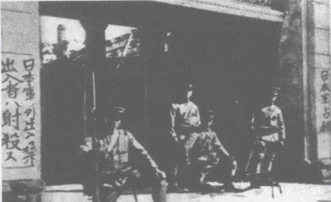 1931年9月18日,“九一八事變”爆發,瀋陽城陷入一片戰火。正在北平戲院看戲的“中華民國海陸空副司令”張學良,下達了著名的“不抵抗”命令。然後在一整夜“不抵抗”操作下,日軍兵不血刃控制了瀋陽城,還進駐了“東三省兵工廠”,在這座號稱“東方第一”的兵工廠門口,擺拍了這張照片。