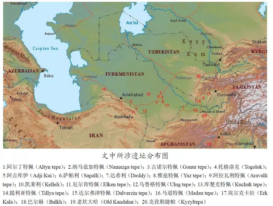 本文“中亞”的地理範圍主要集中於馬爾吉亞那(Margiana)、巴克特里亞(Bactria)地區,兼及索格底亞那(Sogdiana)地區。這一區域是中亞綠洲文明的發源地帶,由於特殊的地理環境,形成了獨具一格的城市文化。本文擬對從青銅時代到阿契美尼德王朝時期的代表性城址進行考察,討論其形制特點和演變過程。需要説明的是,目前學術界對於史前時期設防聚落的功能、性質等研究並不均衡,認識參差不齊、差異較大,因而本文使用“城址”一詞來限定討論材料的範圍,指的是在考古學上能夠觀察到有牆體環繞的聚落遺址,與一般意義上的“城市”存在差別。