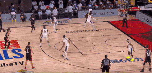 詹姆斯!是的,**這種情況下詹姆斯成了湖人最好的保護籃筐的球員!**進攻需要他不停衝殺,眼觀六路耳聽八方,防守還需要他不停地觀察,協防掃蕩,你們真以為他是剛滿30的年輕壯漢嗎?