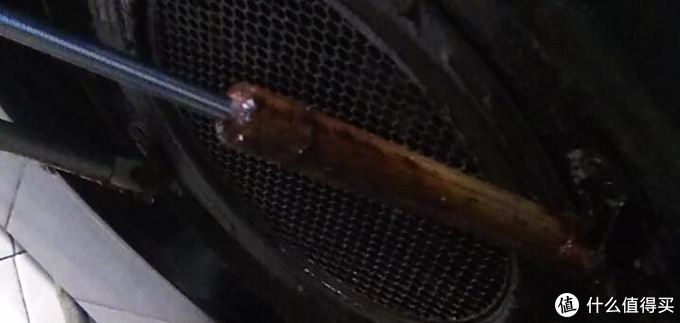 注意有紅圈的地方發生了破損~~於是知道了這玩意不是沒有尖鋭的部分的。之後也試了試擦金屬管,清潔前:
