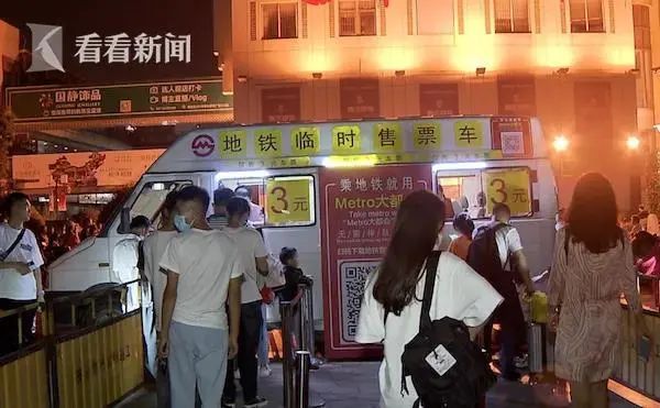 可想而知,交通也是飽經考驗,國慶期間上海地鐵10號線豫園站客運壓力激增,為此,豫園站外首次推出了臨時售票車,售賣3元的應急車票。