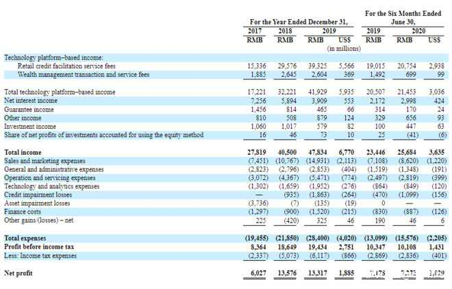 據招股書顯示,2017年至2019年,財富管理淨利潤分別為60.27億元、135.76億元、133.17億元,2020年上半年淨利潤72.72億元,較2019年上半年同期的74.78億元減少了2.75%,事實上在上市之前,陸金所收入增長已呈放緩趨勢。