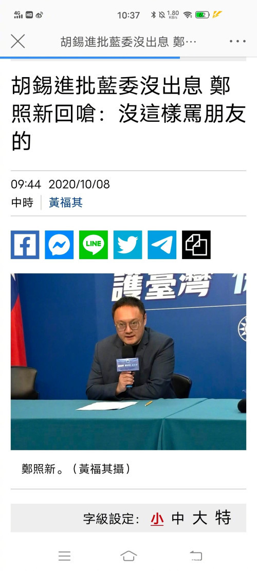 闌尾鄭照新對老胡的回嗆不過説明了一個事實,現在的台灣國民黨的一部分人又要做回“反動派”了,要跳出來“對內指責人民、對外投靠婢膝”。為什麼是指責不是欺壓吶?因為沒這個能力了,只能裝成有骨氣的架勢打嘴炮,簡稱“無能”吧!而且,這次的台灣國民黨反動派有了新動向,除了更無能,在對外奴顏婢膝上還將要滑向“賣國”的泥潭。