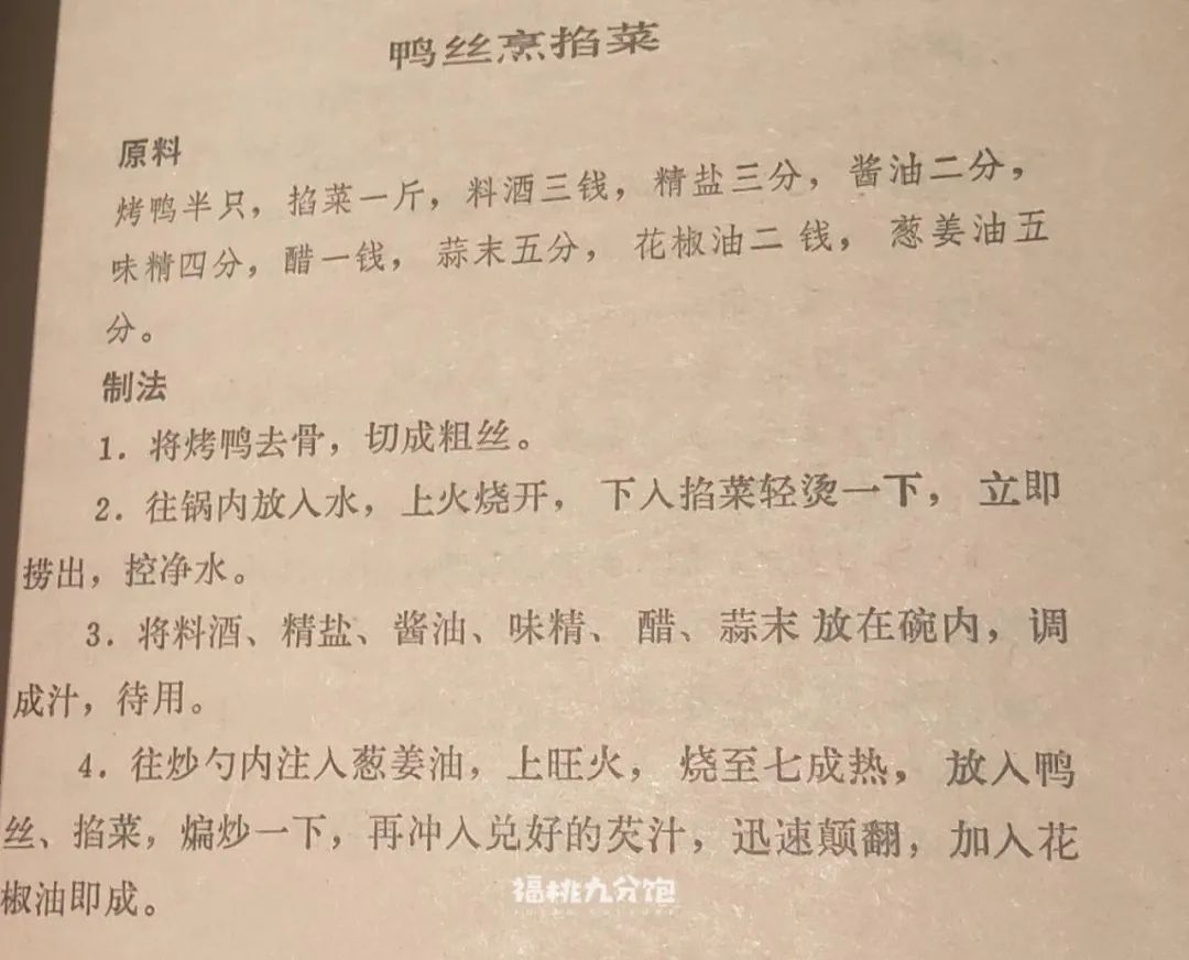 其實在最開始的時候,全聚德是主做烤鴨的,只有零星幾道炒菜。這本菜譜中的許多名菜,大都是全聚德上一輩的師傅在上世紀7、80年代開發的,但“白扒”、“糟熘”、“乾燒”、“油爆”等做法,都源自正統魯菜。