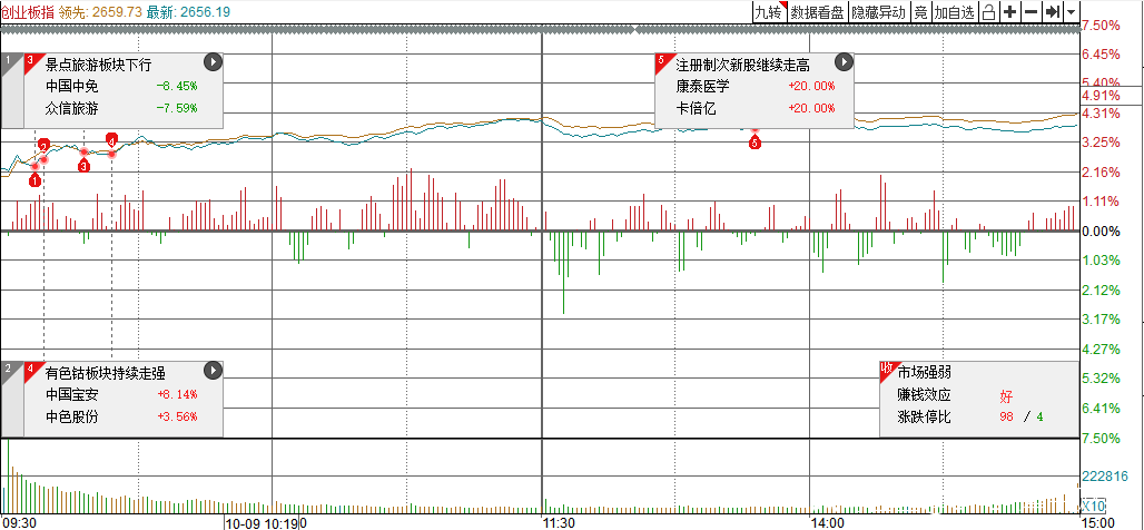 10月9日,美國三大股指持續上漲。A股三大股指高開高走,市場普漲,午後雖有震盪不改全天強勢行情,截至收盤,上證指數漲1.68%,深證成指漲2.96%,創業板指漲3.81%,科創50漲3.32%。創業板指領漲兩市,成長股和題材股爆發是行情上漲最重要的催化劑。