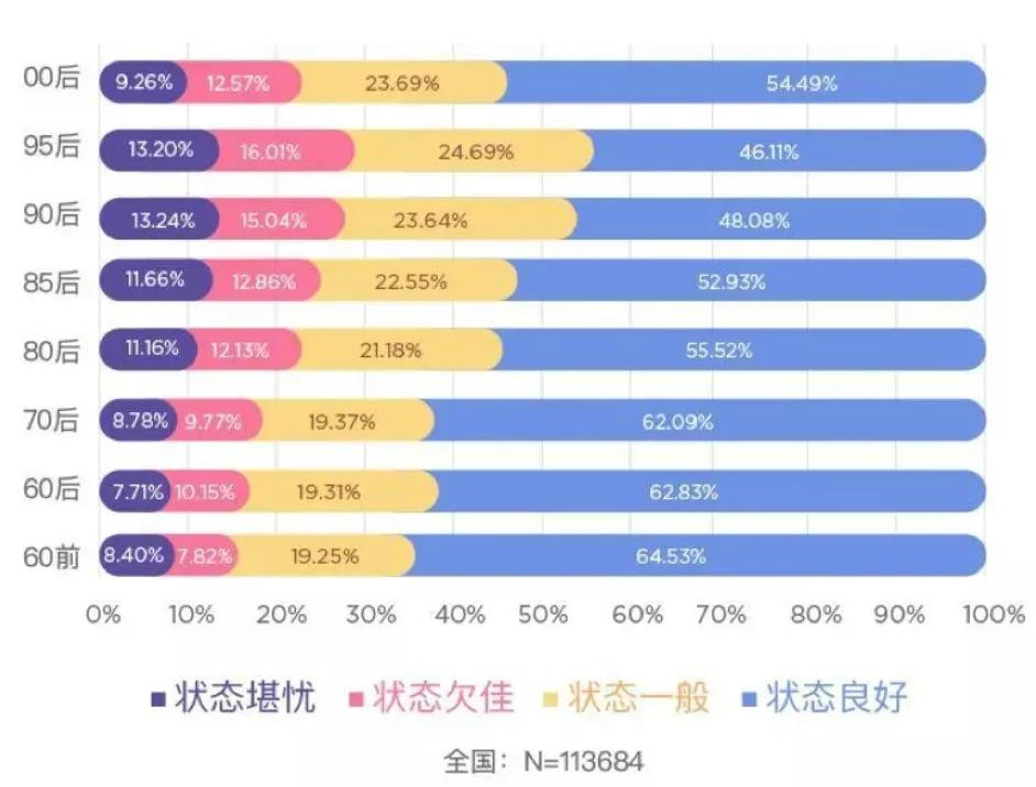 在2019年世界衞生組織(WHO)披露的數據中,全球有超過3.5億人患抑鬱症,每年約有100萬人因為抑鬱症自殺,且數據增長十分迅速,其中中國抑鬱症患者約1億左右,同時中國抑鬱症就醫率僅10%不到。在壹心理取材於2月10日至2月13日11萬份問卷調查下產生的《疫情心理健康報告2.0》中,95後、90後心理狀態並不太好,且易怒、恐懼、抑鬱、疑病成為了這份報告中心理的關鍵詞。