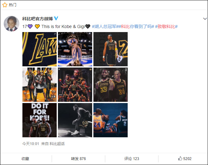 與此同時,詹姆斯實現了為科比拿下冠軍的諾言,這一刻,網友紛紛刷屏致敬科比。有人問,“科比,你看到了嗎?”
