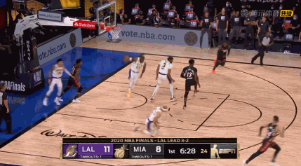 隨着湖人隊在防守端的持續施壓,熱火鄧肯羅賓遜出手空間被壓縮到極限,而希羅則反常啞火,平日裏爐火純青的拋投也失去了準星。