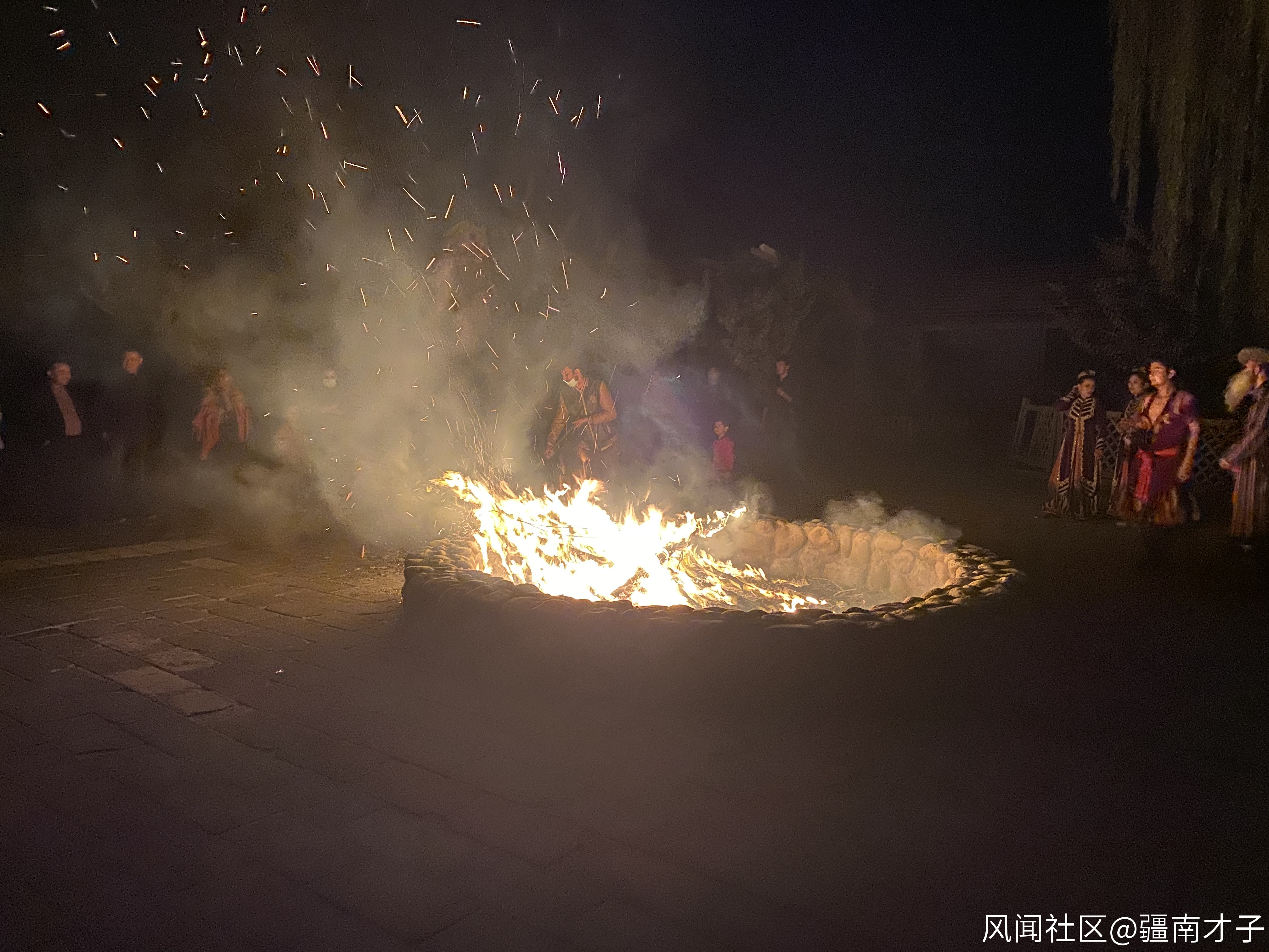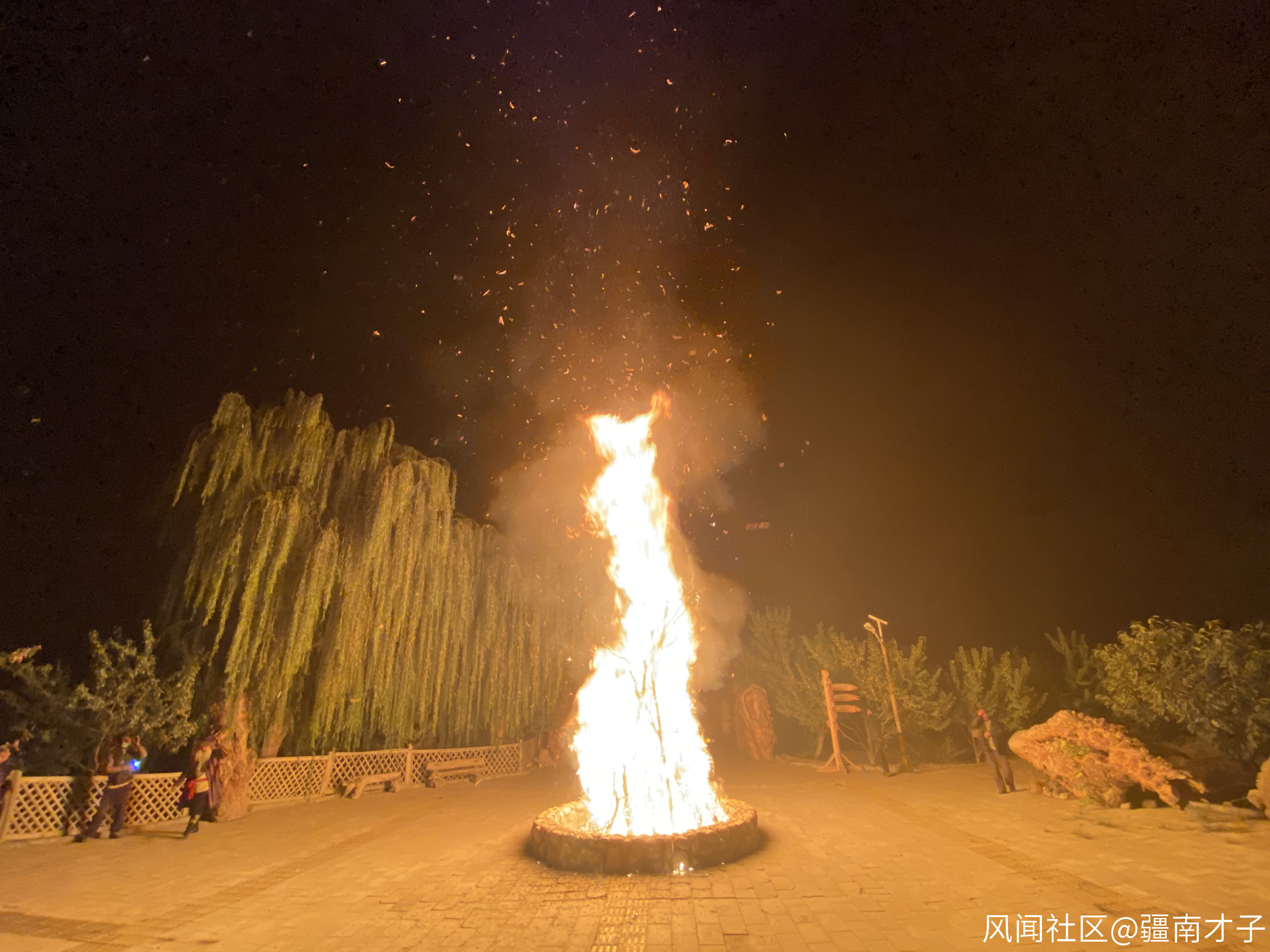 用過晚餐後,參加了刀郎部落的篝火晚會。9月底的阿瓦提縣已經有幾分寒意了,當篝火點燃的那一刻,一股熱浪瞬間撲面而來,像是新疆人的熱情把你團團包圍,寒意立刻退去了。