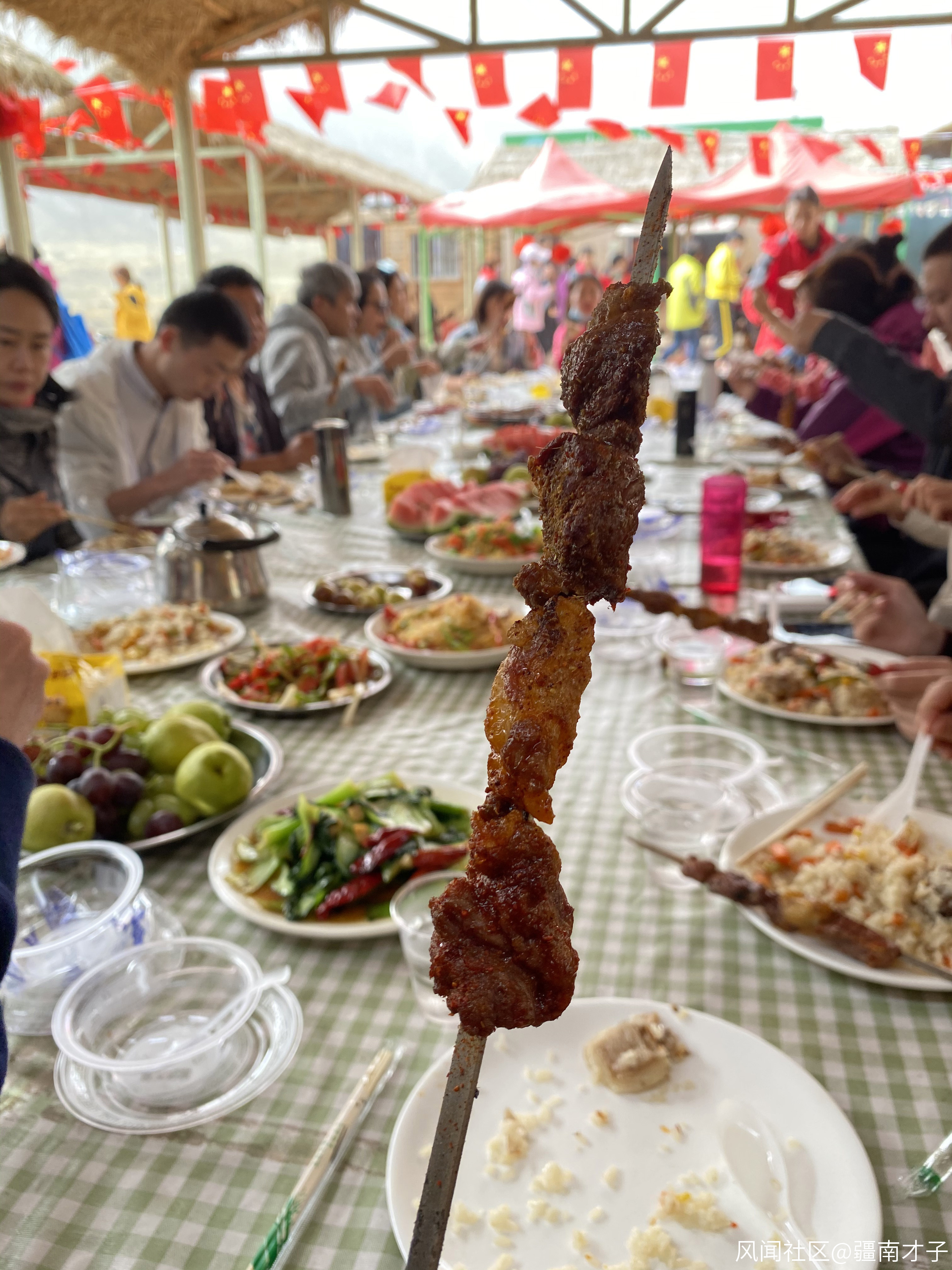 順便提一句,在我們用餐的隔壁宴會廳內,有一對新人正在舉辦婚禮。聽説,當地有很多新人都會選擇來刀郎部落辦婚禮。這一路上也是很巧,一路上經常遇到結婚的新人。