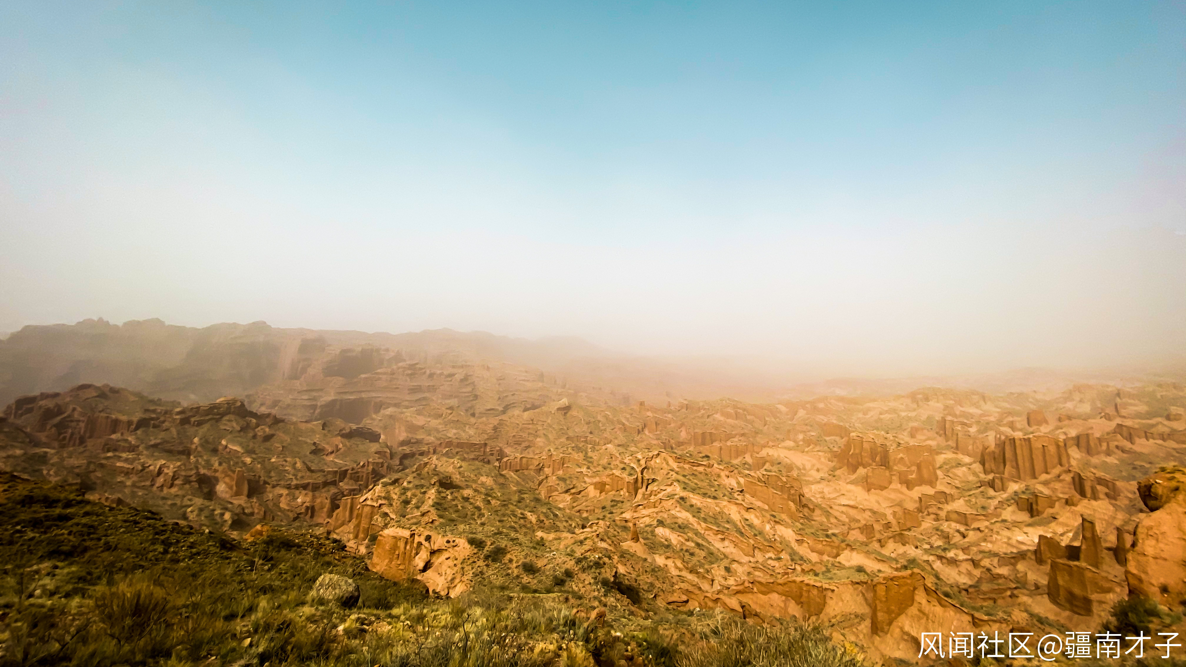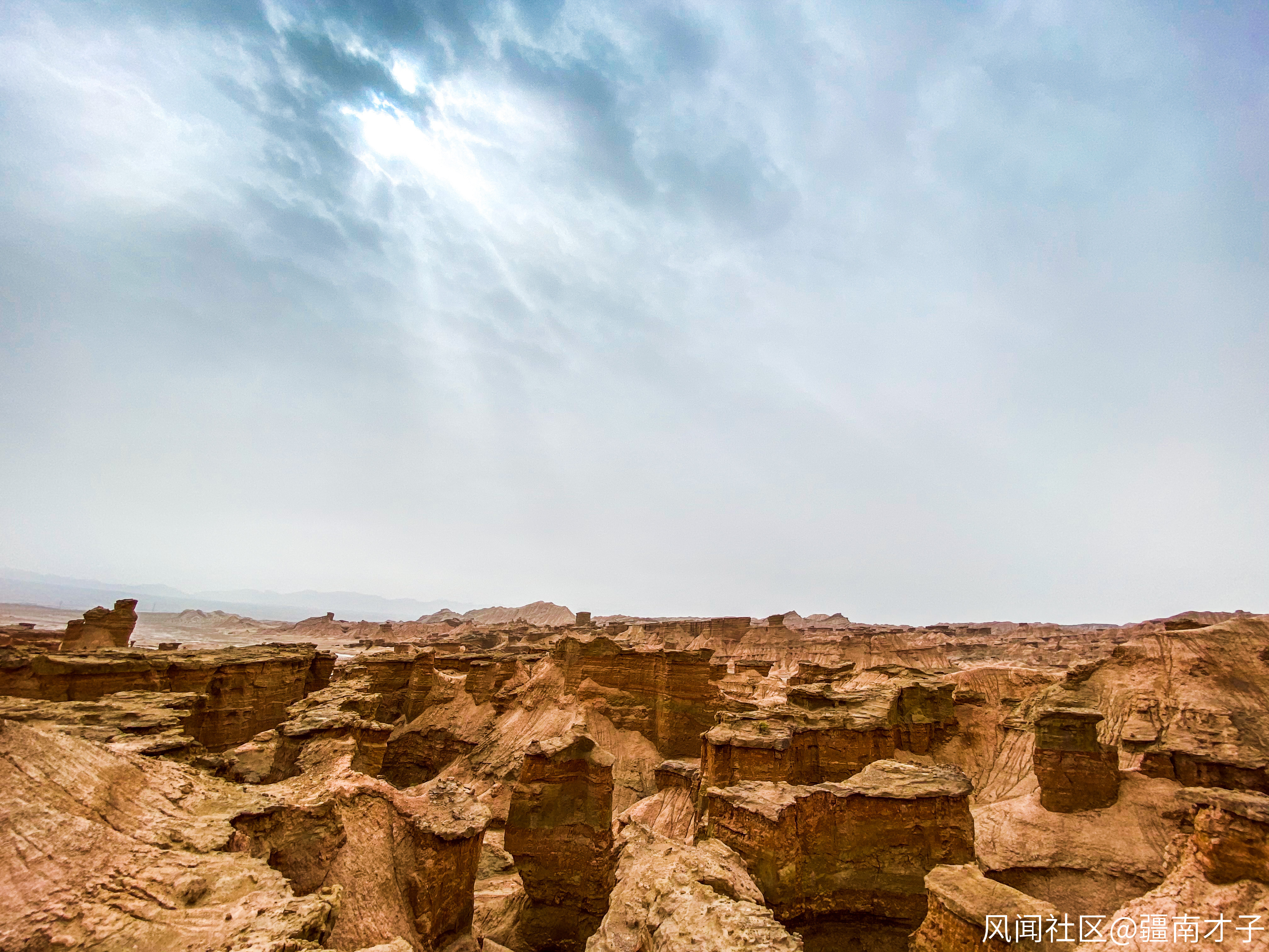 在峽谷最高峯處海拔有1965米,站在這裏在天氣好的時候,還可以看到遠處的雪山。放眼四周,可以看到一座座直立着的山體屹立於戈壁中,彷彿是一座巨大古城。