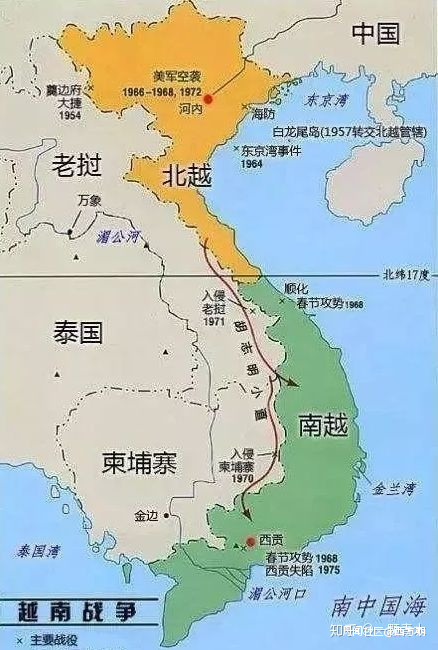 越南的17°線在朝鮮戰爭僅僅結束2年之後,越南戰爭爆發,到了1965年,美國更是直接參戰。