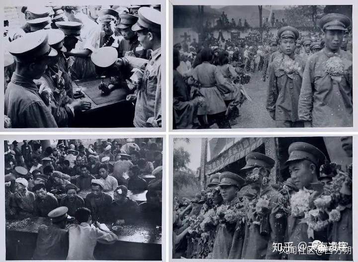 最後沒有辦法,就在野地裏拿松樹條搭了一個門,上面貼了三個字“解放門”,願意跟着共產黨部隊參軍的,從這個門走過來,不願意的從門邊上走,給兩塊大洋的路費,讓他回家種地去,家裏分地了。