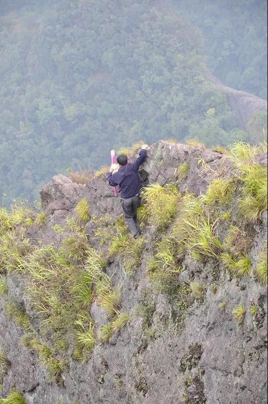 有一次他粘在懸崖上,用雙手跟遊客打招呼,有個廣東來的姑娘當場嚇得暈倒。