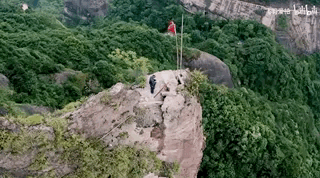 在各種航拍愛好者的視頻裏,我看到了中國最牛逼的無保護攀巖大師,在懸崖上幫遊客上香。代人上香的道士就是中國版的Alex Honnold,真正的無保護攀巖大師。