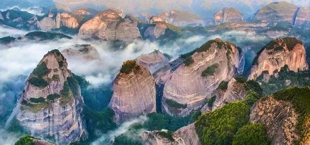(八角寨又名雲台山,坐落於湖南新寧縣和廣西資源縣之間。主峯海拔818米,因主峯有八個翹角而得名。其發育豐富程度及品位世界罕見,被譽為“丹霞之魂、國家瑰寶”)
