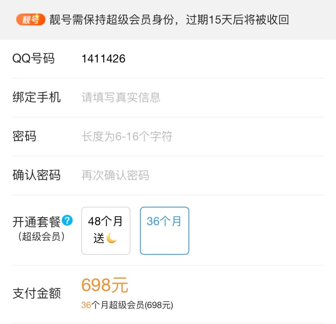目前,一個7位數的靚號,至少需要開通連續3年的超級會員業務才能獲得使用權,即用户需一次性支付698元。但賬號使用權並不是永久,而是需要通過不斷續費來保持,期滿後,如若不續費超級會員,用户將失去賬號使用權,賬號會被清空好友和內容,且無法找回。