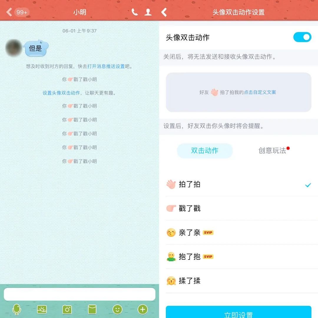 雖然QQ在大方向上極力走和微信不同的道路,但在一些細節上,還是無可避免地和微信趨同化了,兩個產品經常互相借鑑。比如微信前不久上線的拍一拍功能,其實是QQ早就上線的「雙擊動作」。而QQ,也繼微信推出接龍功能之後,推出了和接龍本質一致的「一起寫」功能。