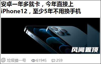 《垃圾安卓一年多就變卡了,今年直接上iPhone12,至少5年不用換手機省心多了》——垃圾貓一號