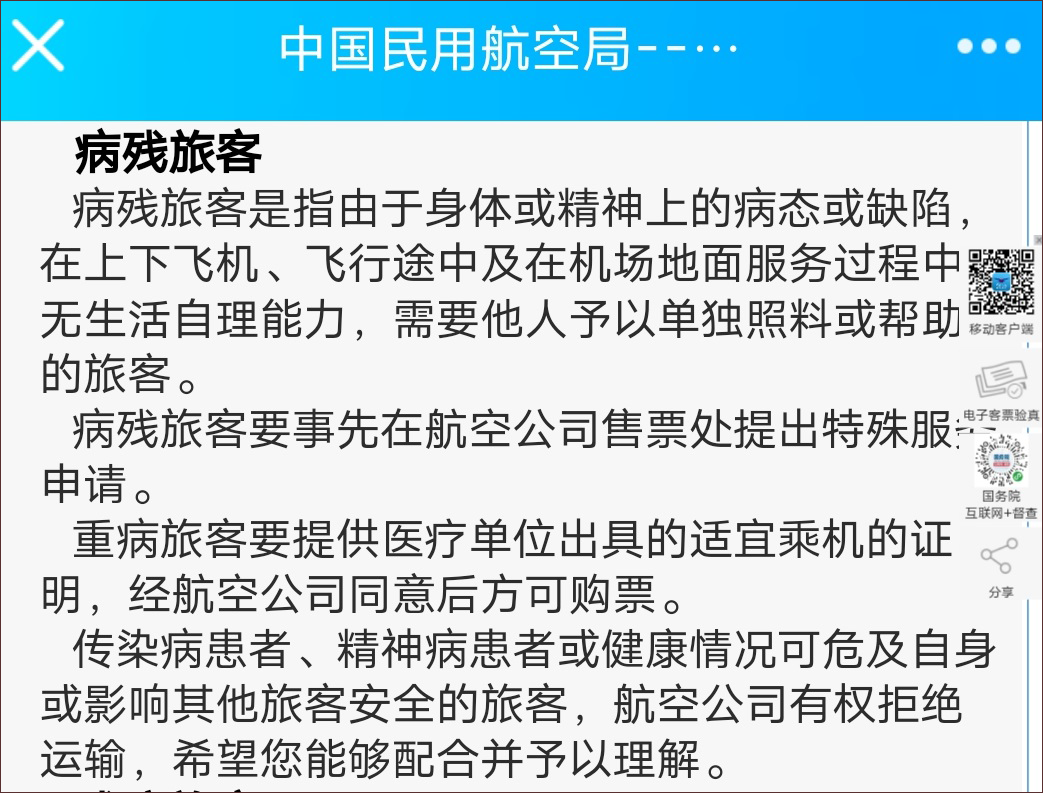 對於這樣的**“特殊旅客”**,“購票應提供相關證明並辦理特殊旅客運輸手續。”