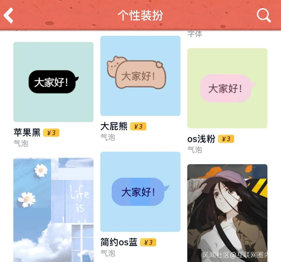 目前,在QQ的個性裝扮版塊內,存在眾多價格3元的裝扮商品,有用户對「互聯網圈內事」吐槽,“以前只要開通超級會員就可以使用全部裝扮,大概一年以前,QQ推出了需要額外付費購買的裝扮。”