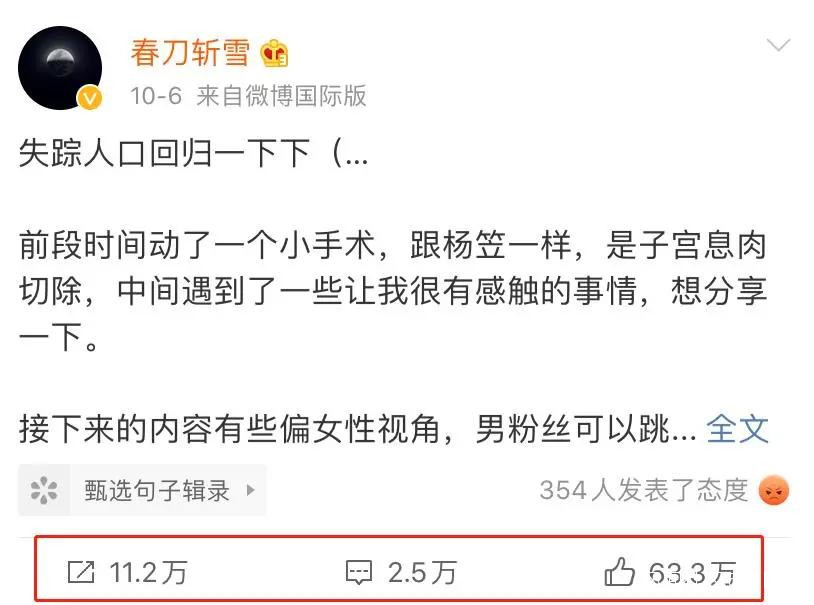 近日,一位名為“春刀斬雪”的博主在微博上講述了一段自己看病的經歷,沒想到此事卻引起了網友廣泛關注。截止目前,該條微博轉發超過11.2萬、評論超過2.5萬、點贊超過63.3萬。