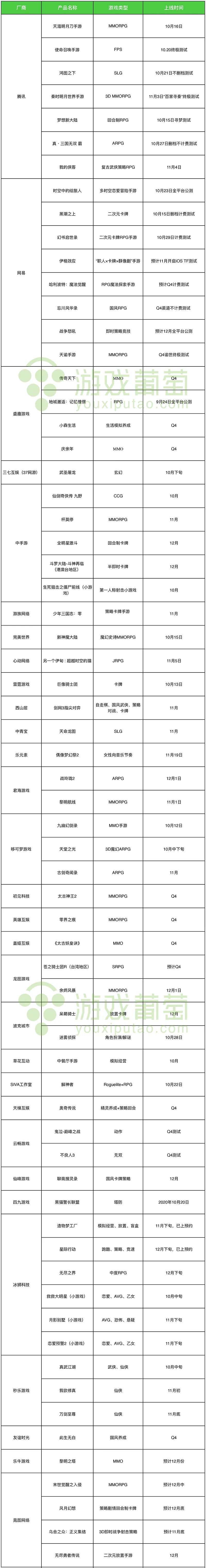 近日,葡萄君整理了國內遊戲廠商Q4產品儲備情況,最終彙總到30家廠商、66款新品。