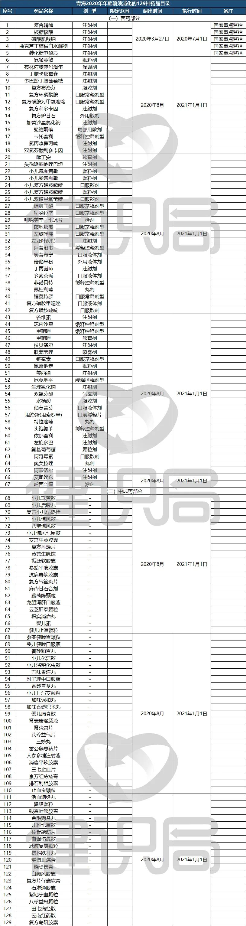 10月10日,青海醫保局、省人力資源和社會保障廳發通知,宣佈將增補的227個藥品調出醫保目錄。其中129個須在2021年1月1日前停止醫保、工傷保險報銷,另有98個品種將於2022年內調出。