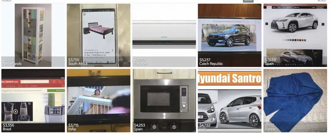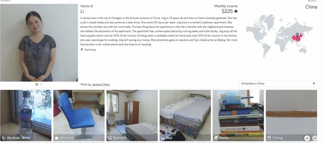 這個網站,收錄了來自世界各地,不同地區,不同收入的家庭的情況。其中展示的細節,包括但不限於房屋外觀,生活用品,吃住水平,出行工具。
