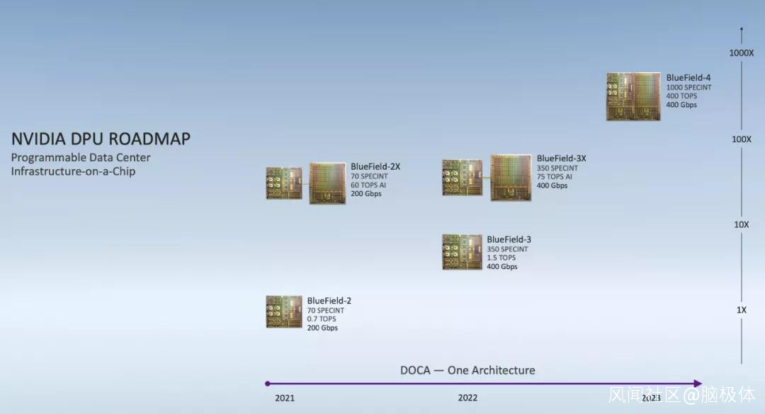 當時,黃仁勳把Mellanox的技術看作是公司的“X因素”,也就是把數據中心改造成一個可以解決高性能計算要求的大型處理器架構。而如今我們看到DPU的出現,已經是具有這一架構雛形的一種嘗試了。