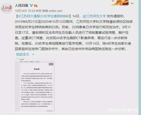 部分人羣機體調適跟不上從而抗病能力減弱因此秋季也是很多疾病的高發時期比如流感、腸胃炎、結核病……近日“江蘇師大通報22名學生患肺結核”的新聞引發了網友的熱議