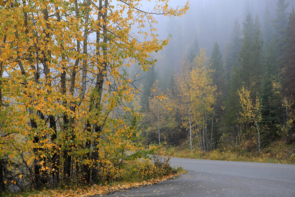 加拿大東部現在楓葉要轉紅了吧?西部即使有楓葉,也只是轉黃,到了該紅的時候,氣温已經太低,葉子沒轉紅就掉下來了。不過山裏的落葉松(larch)是轉黃的,還有就是白樺樹,金黃的樹葉,潔白的樹幹,真好看。