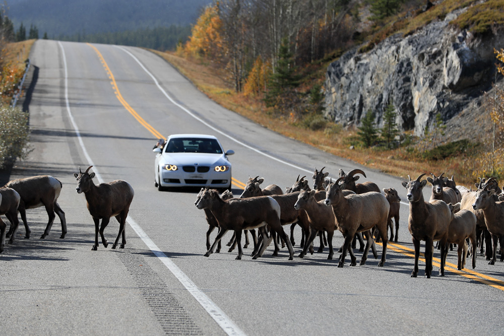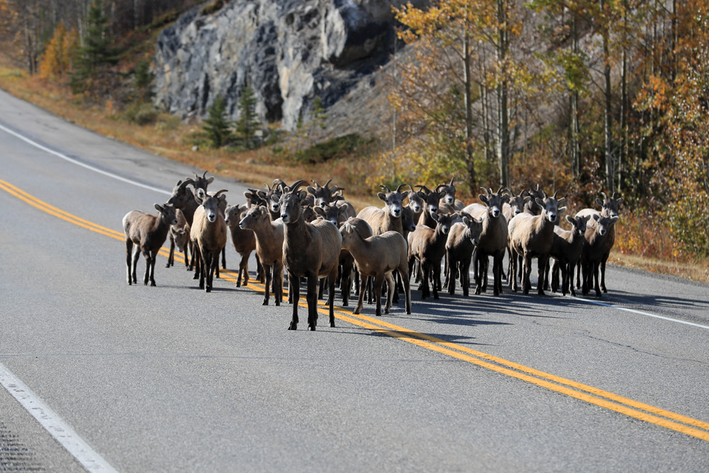 公路上看到一羣野山羊,頭羊很警惕,也很負責地身先士卒。山羊見過很多,但這樣被圍觀還是頭一次