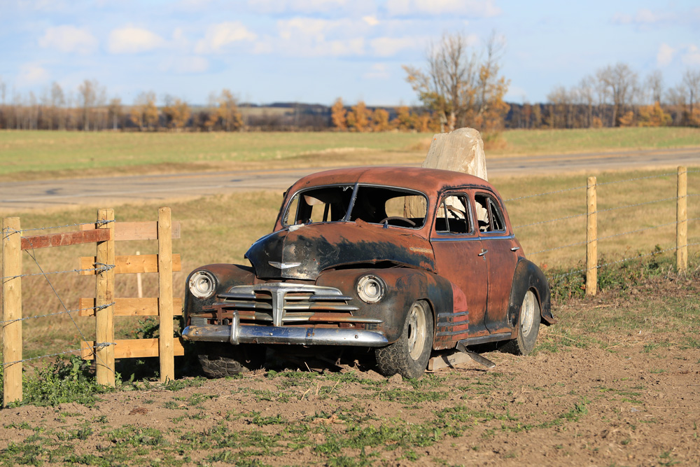 回家路上看到農民的田間地頭停着一輛生鏽的老爺車,他們常把老舊的汽車、農具停在地頭作為裝飾,也作為自家地盤的標誌,否則公路上開過來,一馬平川地要找自家還不好找,尤其是黑燈瞎火的晚上