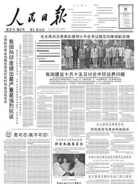 面對印度的悍然侵略行為,1962年9月22日,《人民日報》發表《是可忍,孰不可忍》的社評,稱**“局勢是險惡的,後果是嚴重的,我們要正告印度當局,勿謂言之不預也。”**