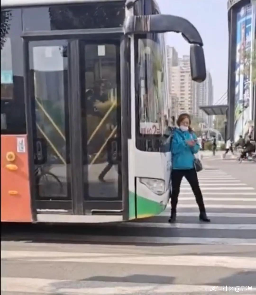 一個真敢靠!一個真敢開!未趕上公交車,女子攔靠車頭,奇葩的一幕發生了_風聞