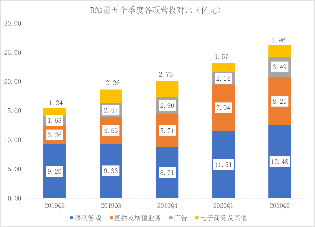 再回過頭來看B站營收的那幾項,對遊戲的依賴度有些大,這是公認的事實;遊戲之外的挖掘,廣告營收不好做,B站堅持了很多年不做貼片廣告,這是保持用户粘性的好做法,卻讓B站廣告收入開拓較為艱難;電商領域,B站的作用還是很間接,難以帶來太多收入。