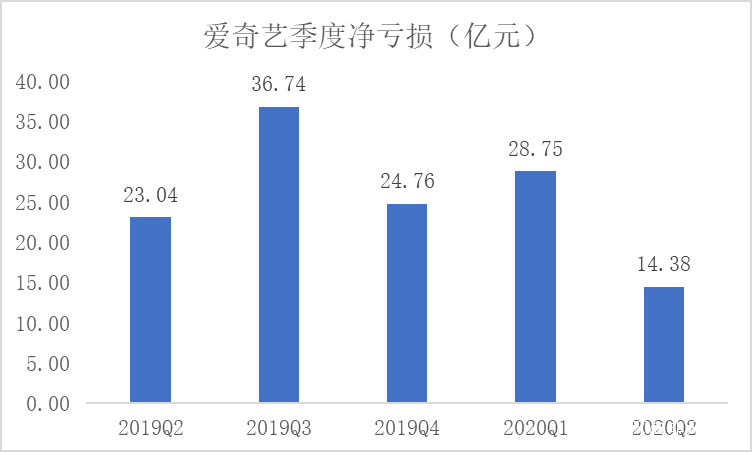 再看愛奇藝的財報,最近五個季度幾乎每個季度都要虧損20億元以上,只有最新的今年二季度虧損才剛收窄到15億元以內。