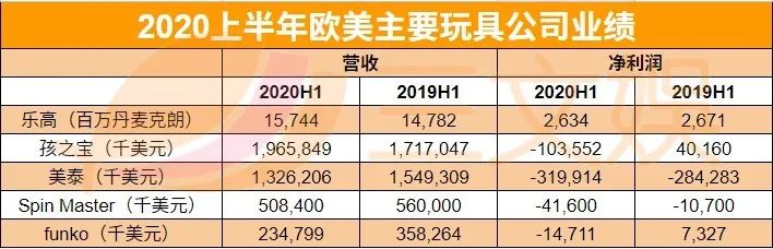 唯一一家穩住了業績的是樂高。2020年上半年營收157.44億丹麥克朗,同比增長6.5%;淨利潤26.34億丹麥克朗,同比下滑1.4%。