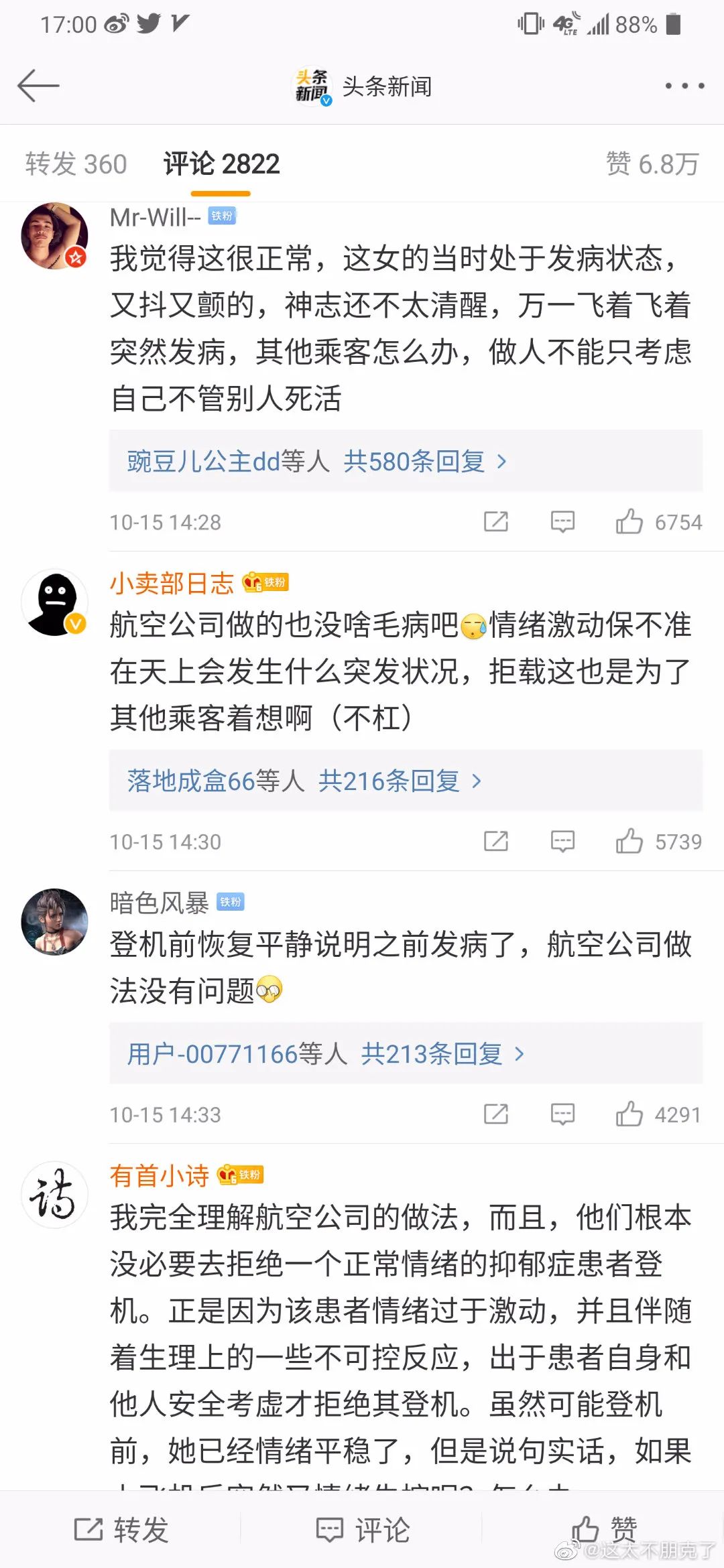 部分網友表示能夠理解航空公司做法