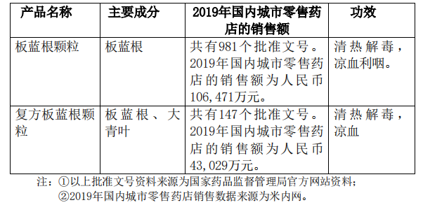 目前,板藍根產品在國內市場已是充分競爭的產品,板藍根顆粒、複方板藍根顆粒已獲批准的文號數量眾多(如下表所示),板藍根產品不是本公司或其附屬企業的獨家生產品種。