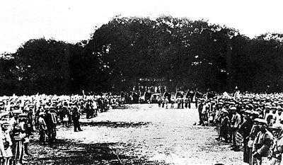 1931年7月11日閲兵儀式上,中華蘇維埃共和國臨時中央政府為紅軍授旗 供圖/周鐵鈞