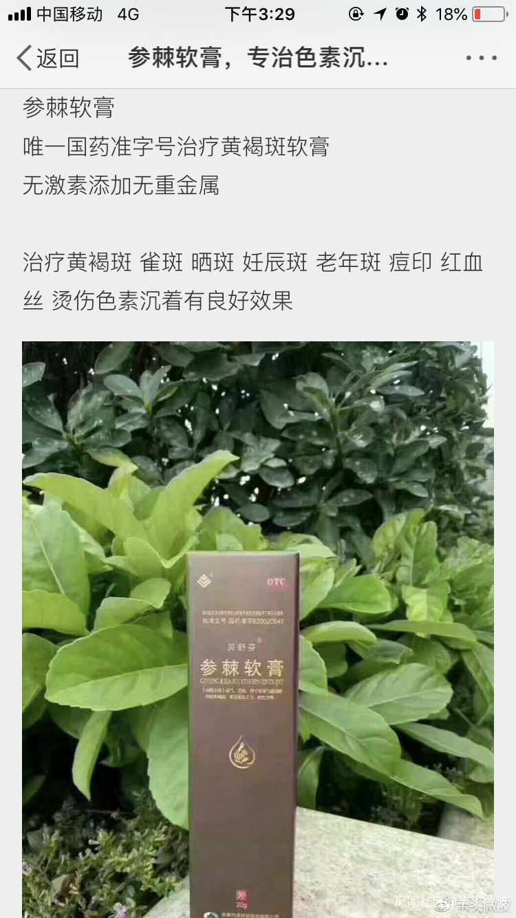[2]《參棘軟膏,專治色素沉着性瘢痕》該美篇被爆後,好像已被譚某某刪除了,但是有截圖: