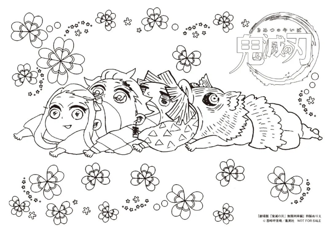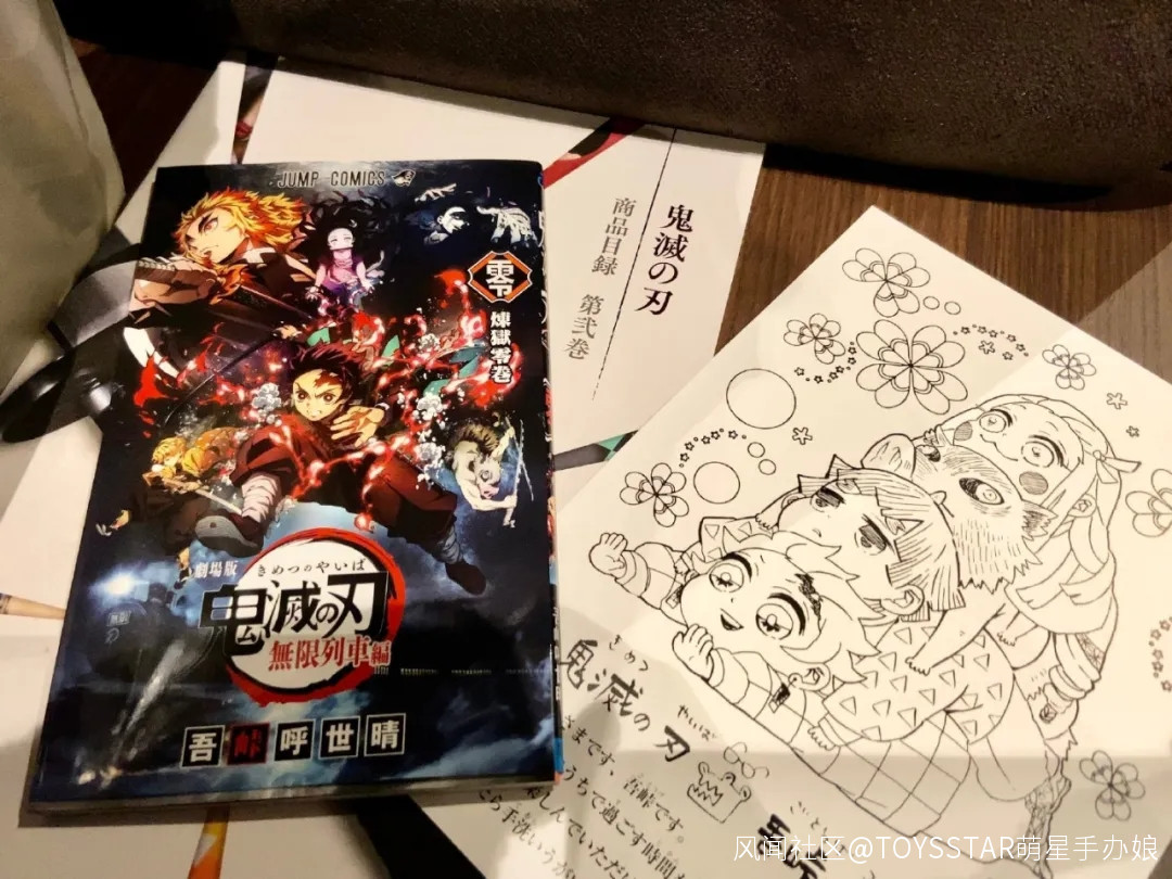 雖然平時粉絲都在吐槽原作者“鱷魚老師” 吾峠呼世晴冷酷無情… 但這次劇場版老師為入場者贈送了兩款親手繪製的明信片~更可自行回家塗色解抑(因為據日本看過的小夥伴都反饋,一定一定要自備紙巾!實在太感人了,無論上班族的大叔還是學生都被感動的一塌糊塗,不少粉絲更把口罩也淚濕透了)