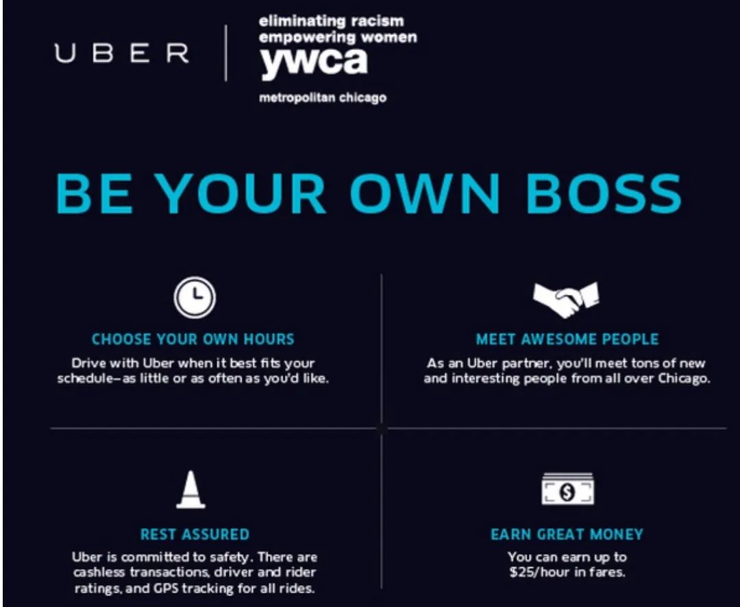 一般來説,網約車司機屬於零工經濟(gig economy)的範疇。零工經濟是通過互聯網平台的信息分發和組織流程,資源提供者快速滿足用户需求的一種按需(on-demand)僱傭模式,通常被認為有靈活性、自主性等特點。其中,靈活性指的是零工勞動者可以自由安排工作時間和地點,選擇同時在多個平台工作;自主性可簡單理解為零工勞動者擁有是否要工作的權利。但一些以平台為生的網約車司機逐漸意識到零工經濟的靈活性、自主性只是假以美名,實質卻是讓他們以較少的收入付出更多的勞動,以名義的自主接受隱性的管制,以獨立承包商的身份承擔工作中幾乎全部的開支與風險。優步將其平台下的網約車司機稱為“合作伙伴”,宣稱自己僅僅是一個提供科技產品的中立性平台,並不提供運輸服務,藉此否認與一些實質為全職司機的勞動者之間的僱傭關係。優步、來福車以“靈活性”為由的、混淆全職者與兼職者的競次(race to the bottom)行為使二者幾乎壟斷了美國的網約車市場。這裏,“競次”可理解為平台通過剝奪勞動者勞動保障、壓低勞動者工資,從而在市場中贏得競爭優勢的方式。